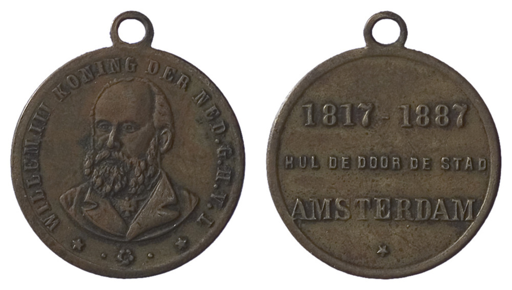 opschrift keerzijde: 1817-1887 / HULDE DOOR DE STAD / AMSTERDAM *