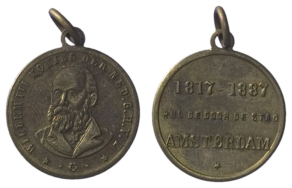 opschrift keerzijde: 1817-1887 / HULDE DOOR DE STAD / AMSTERDAM *