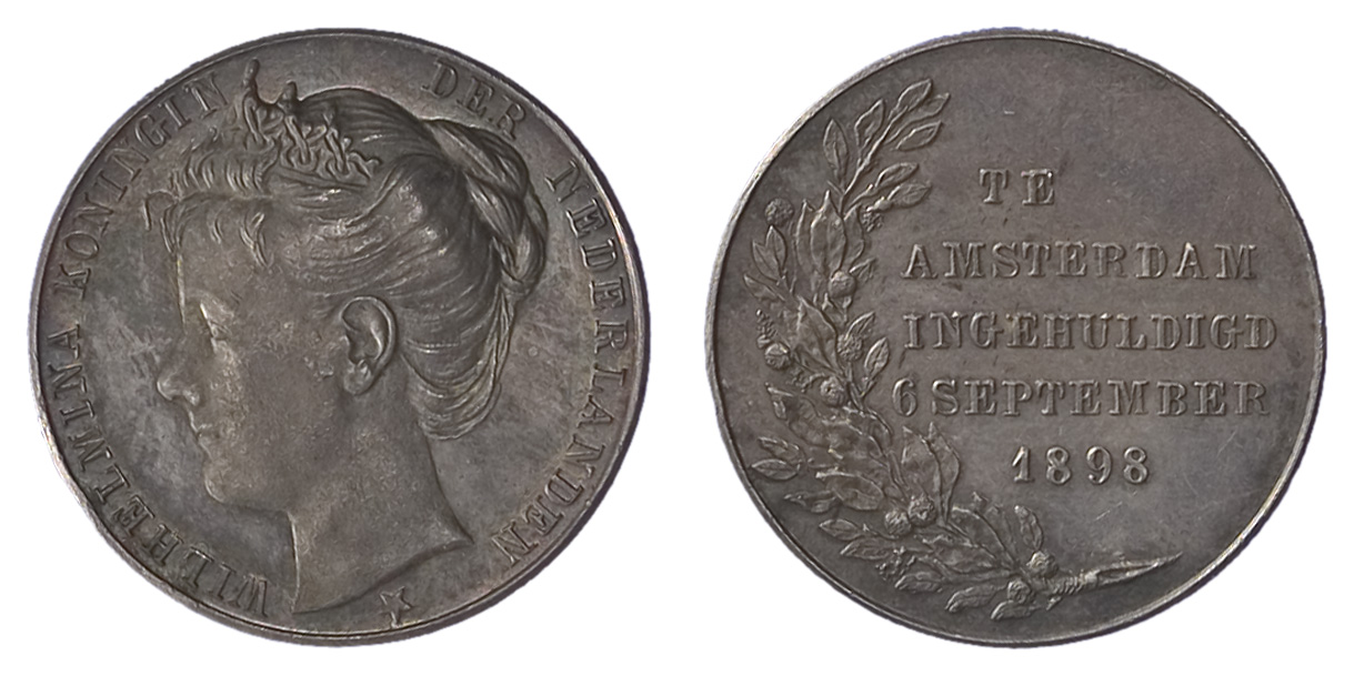 opschrift keerzijde: TE / AMSTERDAM / INGEHULDIGD / 6 SEPTEMBER / 1898