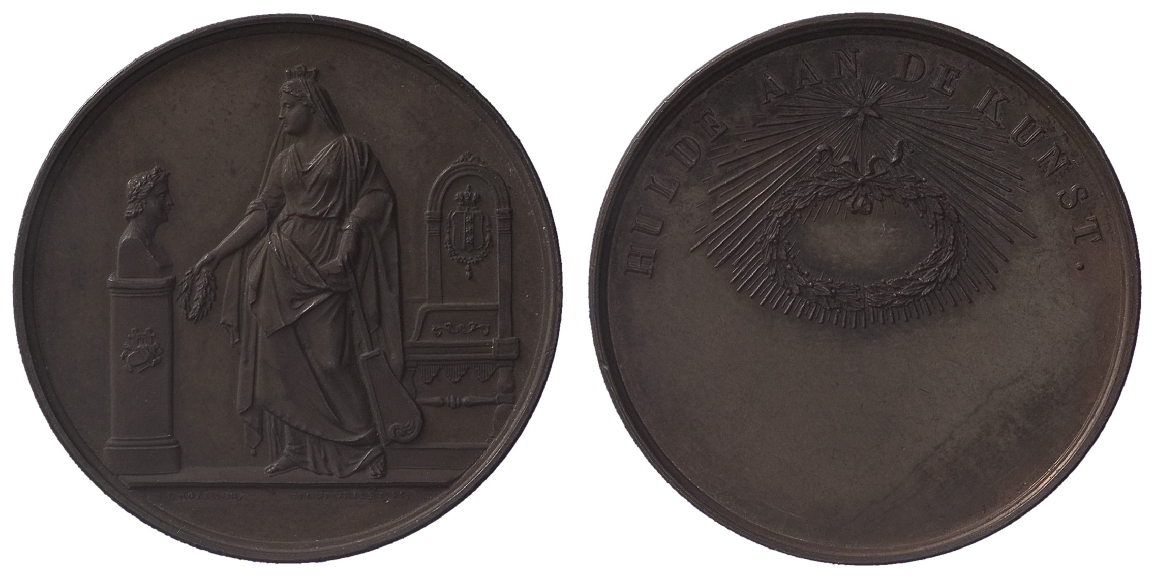 omschrift keerzijde: HULDE AAN DE KUNST.