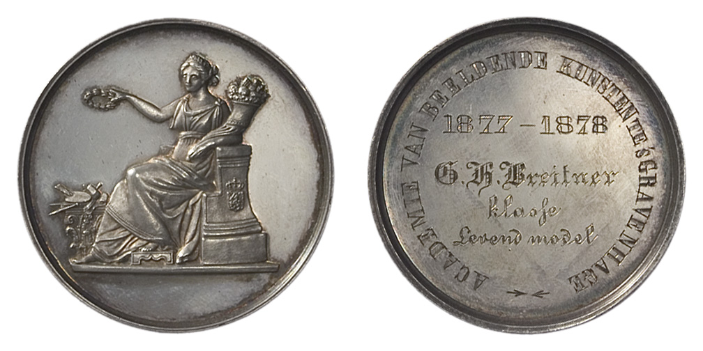 omschrift keerzijde: ACADEMIE VAN BEELDENDE KUNSTEN TE 'S GRAVENHAGE