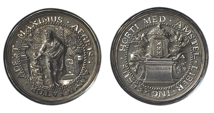 randschrift: CURATOR HORTI MEDICI. AMSTELAEDAMENSIS.