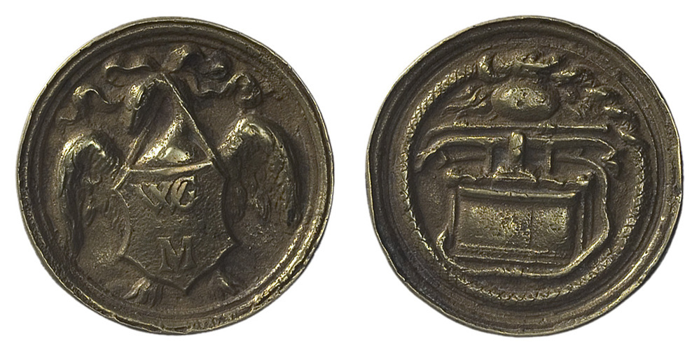 voorzijde: het wapen van de Watergraafsmeer in de vorm van een zwaan met wapenschild voor de borst, waarop de letters WGM. keerzijde: een afbeelding van een brandspuit omgeven door een Ouroboros. Boven de brandspuit een leeg ovaal.- Trefwoorden