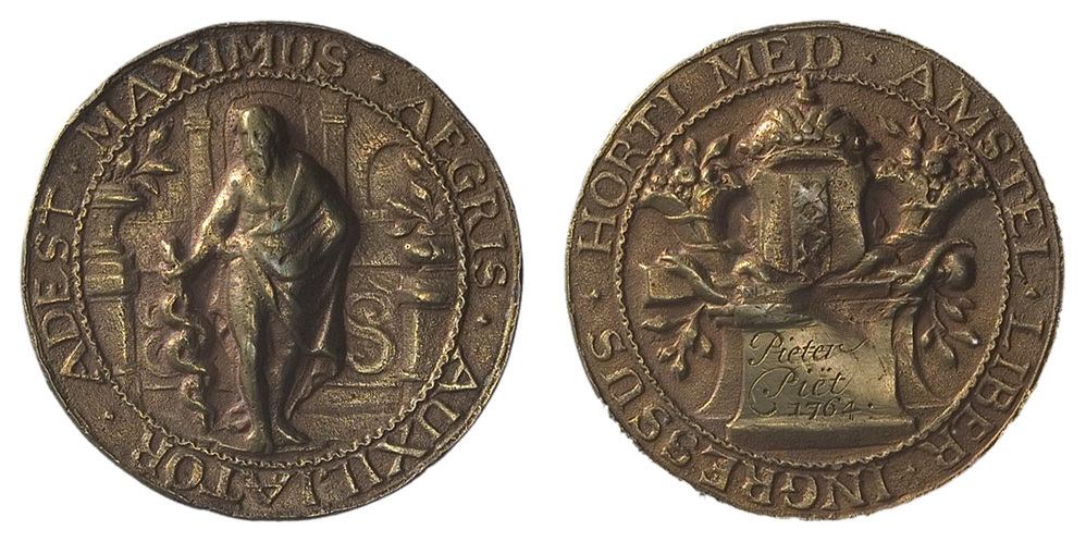 Collegium Medicum toegangspenning Hortus Medicus t.n.v. Pieter Piët 1764, 1696