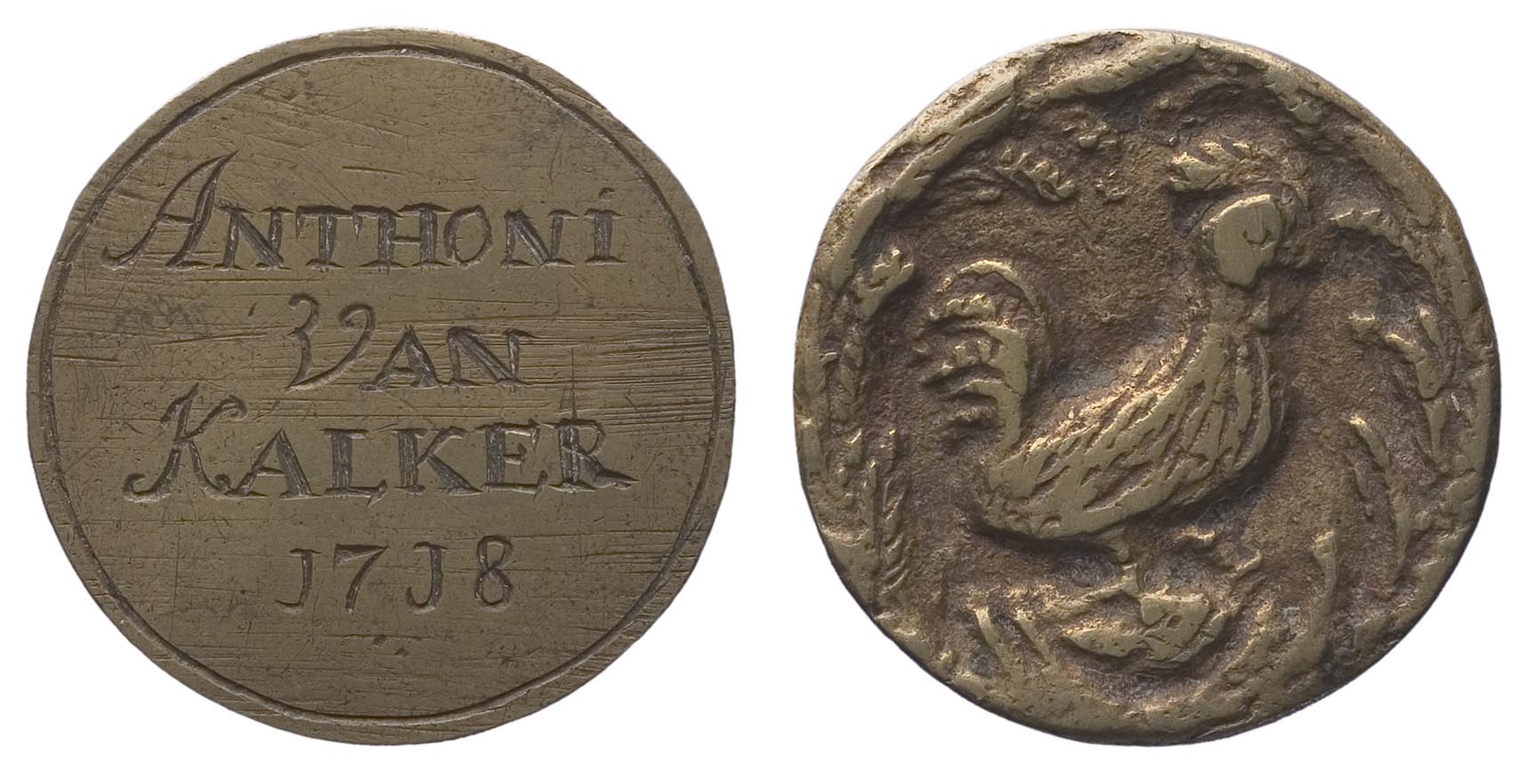 - signatuur, datering keerzijde: ANTHONI / 3JAN / KALKER / 1718