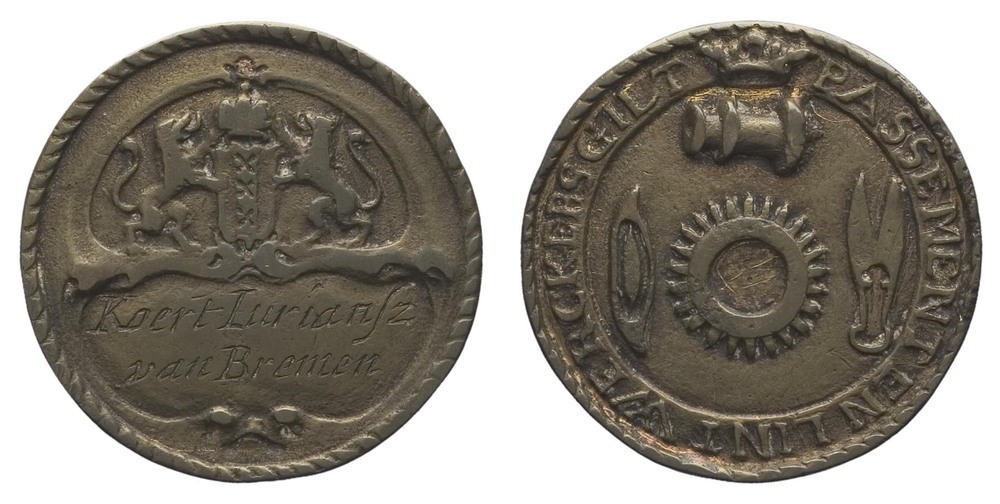 omschrift voorzijde: PASSEMENT EN LINT WERKERSGILT