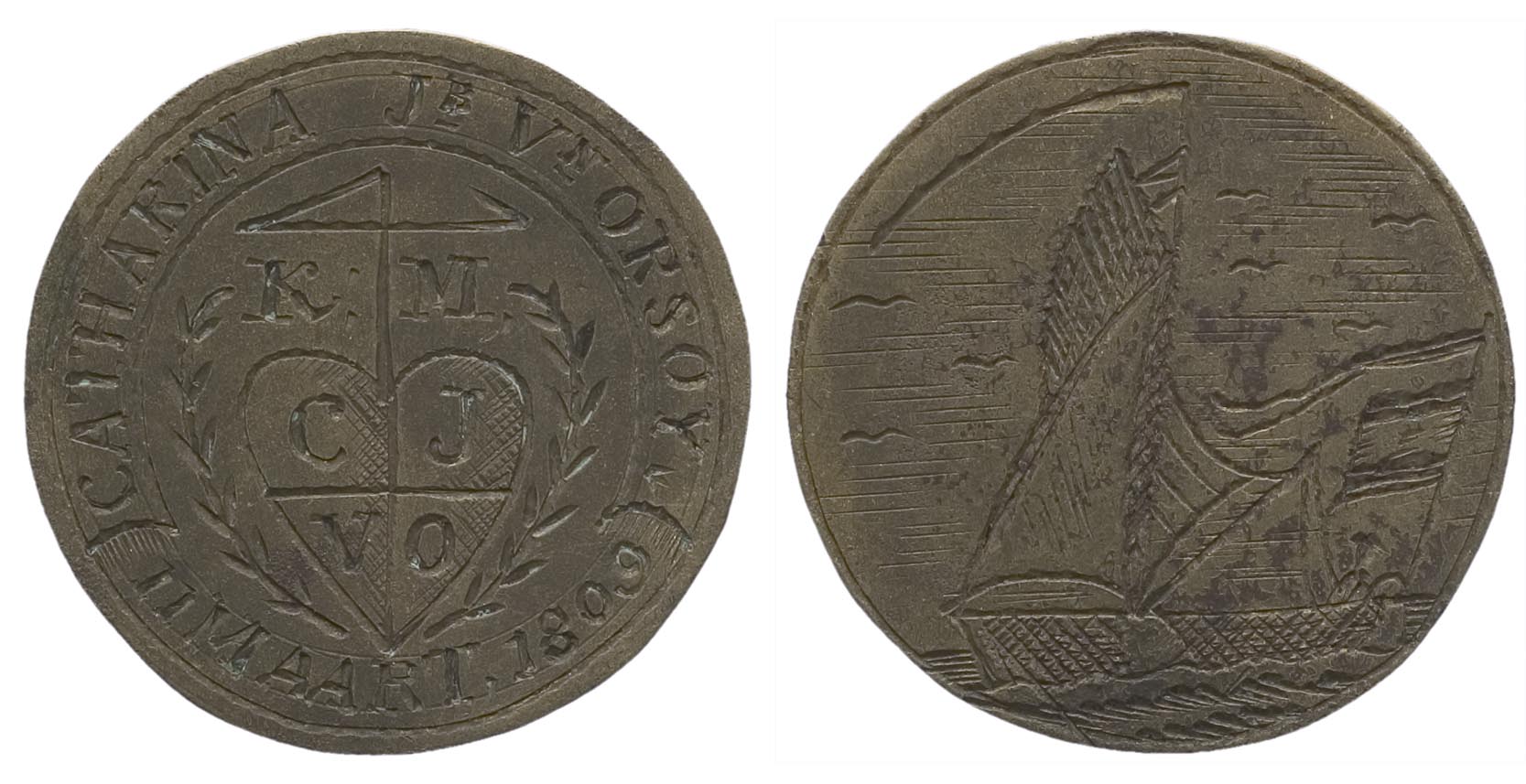 omschrift keerzijde: CATHARINA Jb Vn ORSOY / 11 MAART 1809