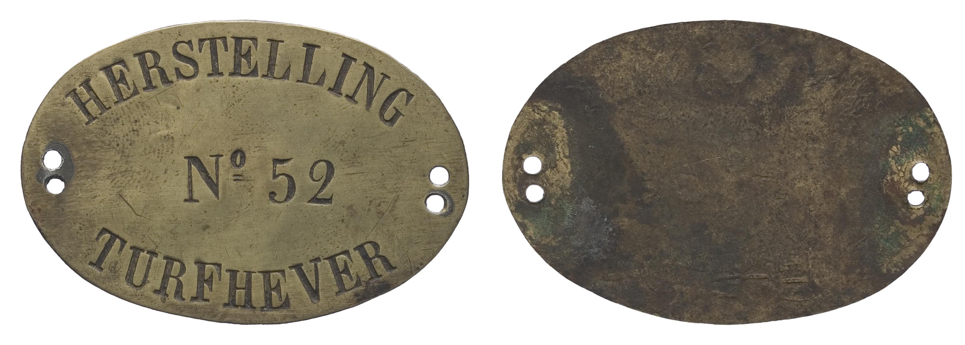 - opschrift voorzijde: HERSTELLING / Nº 52 / TURFHEVER