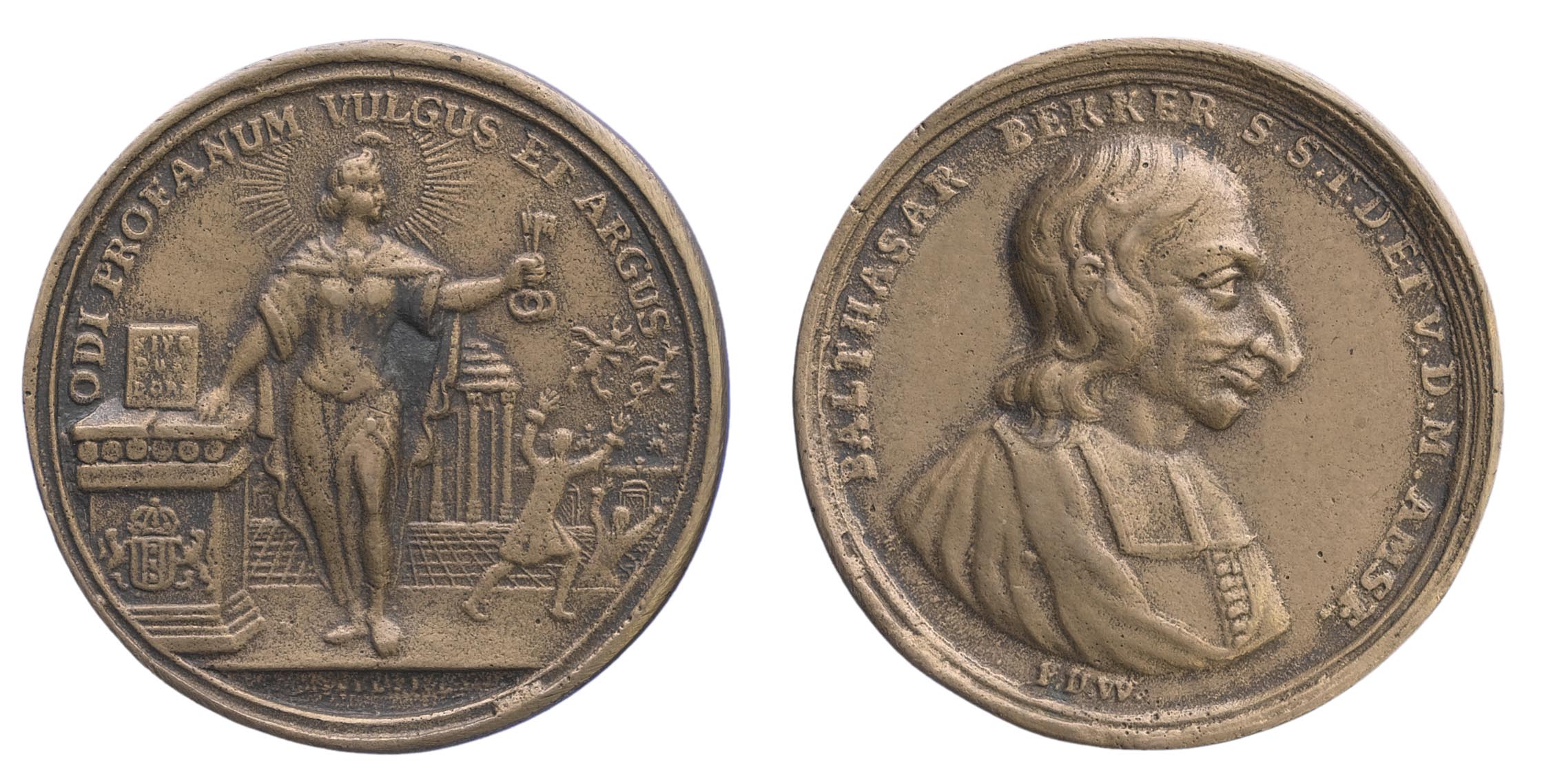 Beeld voorzijde: borstbeeld van Balthasar Bekker met toga Beeld keerzijde: de waarheid met twee sleutels in de hand- Trefwoorden