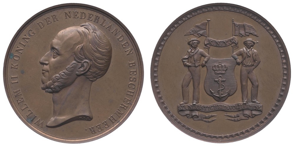 omschrift voorzijde: WILLEM II KONING DER NEDERLANDEN BESCHERMHEER.