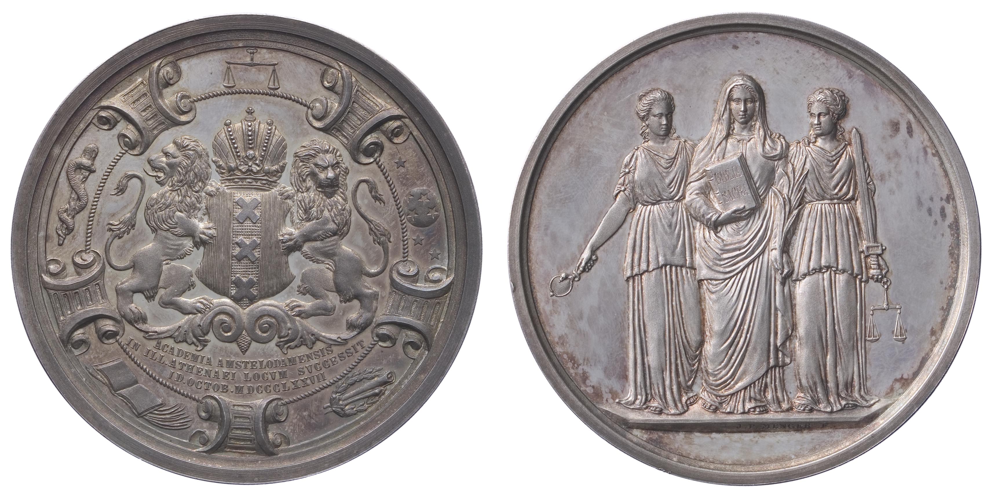 onderschrift keerzijde: ACADEMIA AMSTELODAMENSIS / IN ILL. ATHENAEI LOCVM SVCCESSIT / ID. OCTOB. MDCCCLXXVIII