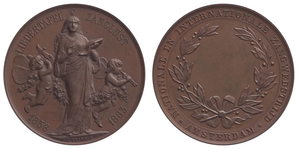 omschrift keerzijde: NATIONALE EN INTERNATIONALE ZANGWEDSTRIJD * AMSTERDAM *