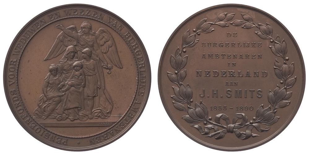 opschrift keerzijde: DE / BURGERLIJKE / AMBTENAREN / IN / NEDERLAND / AAN / J.H. SMITS / 1853 - 1890