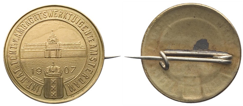 omschrift voorzijde: INT:NAT:TENT:V.AMBACHTSWERKTUIGEN TE AMSTERDAM / 1907