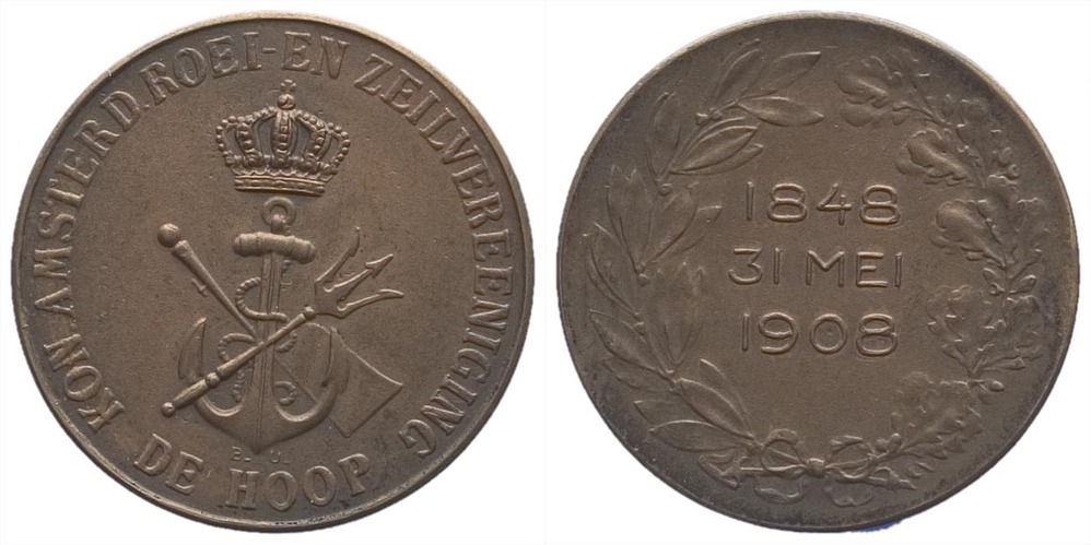 omschrift voorzijde: KON. AMSTERD. ROEI- EN ZEILVEREENIGING / DE HOOP