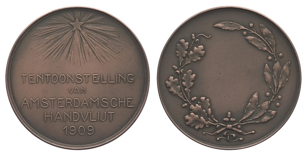 - opschrift voorzijde: TENTOONSTELLING / VAN / AMSTERDAMSCHE / HANDVLIJT / 1909