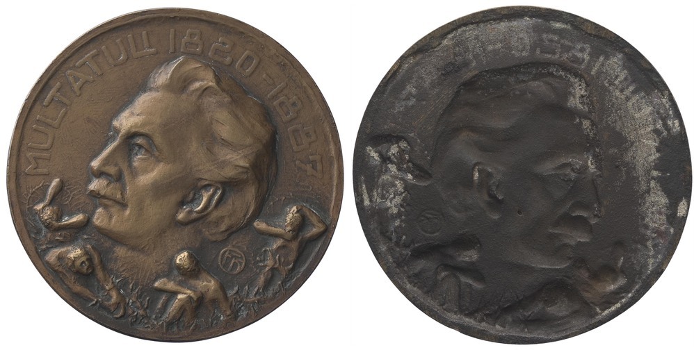 Eeuwfeest van de geboorte van Multatuli, 1920 brons hoogte: 9.3 cm; breedte: 9.3 cm; diepte: 0.6 cm; gewicht: 119.34 gr; omschrift voorzijde: MULTATULI 1820 - 1887