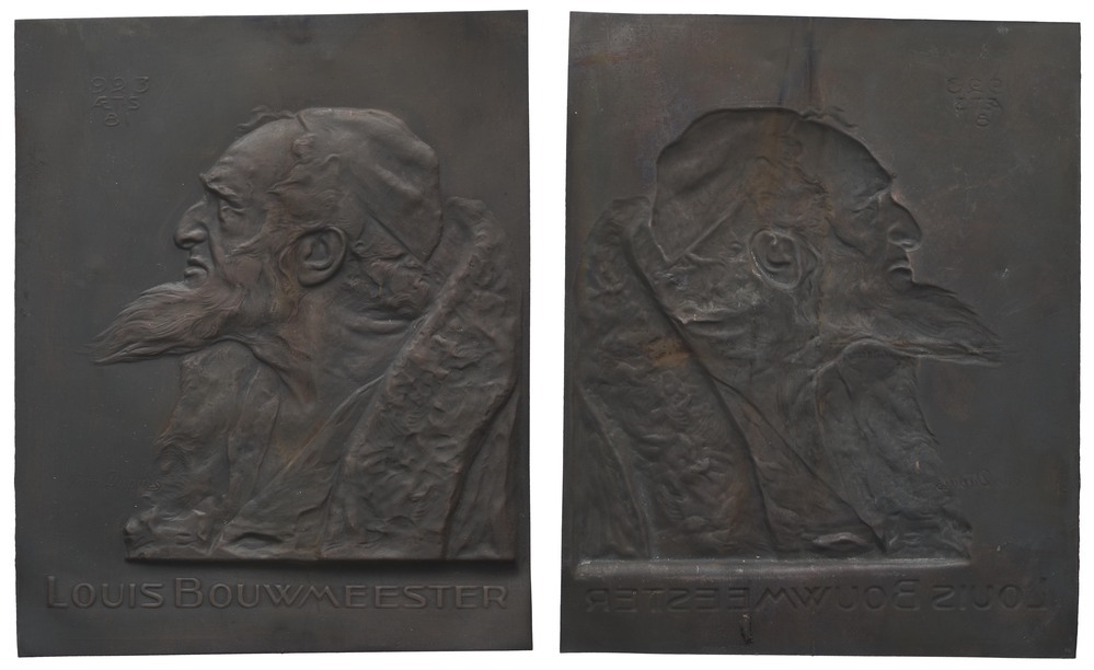 Louis Bouwmeester (1842-1925) is een van de grootste Nederlandse toneelspelers van de twintigste eeuw. Hij begon zijn carrière in 1861 bij het Volkstoneel en stapte in 1879 over naar Het Nederlandsch Tooneel. In 1902 ging de inmiddels gevierde acteur zelfstandig verder. Het meest bekend en gewaardeerd was hij ongetwijfeld om zijn vertolking van Shylock in De Koopman van Venetië van Shakespeare, de rol waarin hij op deze plakette is afgebeeld en die hij meer dan 2000 maal speelde. Zijn zus Theo Mann-Bouwmeester was eveneens een vooraanstaand toneelspeelster. De toneelprijzen, de Louis d’Or en Theo d’Or, die sinds 1955 jaarlijks worden uitgereikt aan de beste mannelijke en vrouwelijke dragende rol, zijn naar hen vernoemd.