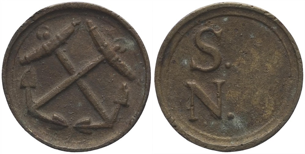 voorzijde: twee gekruiste scheepsankers. keerzijde: twee letters boven elkaar (S N).- Trefwoorden