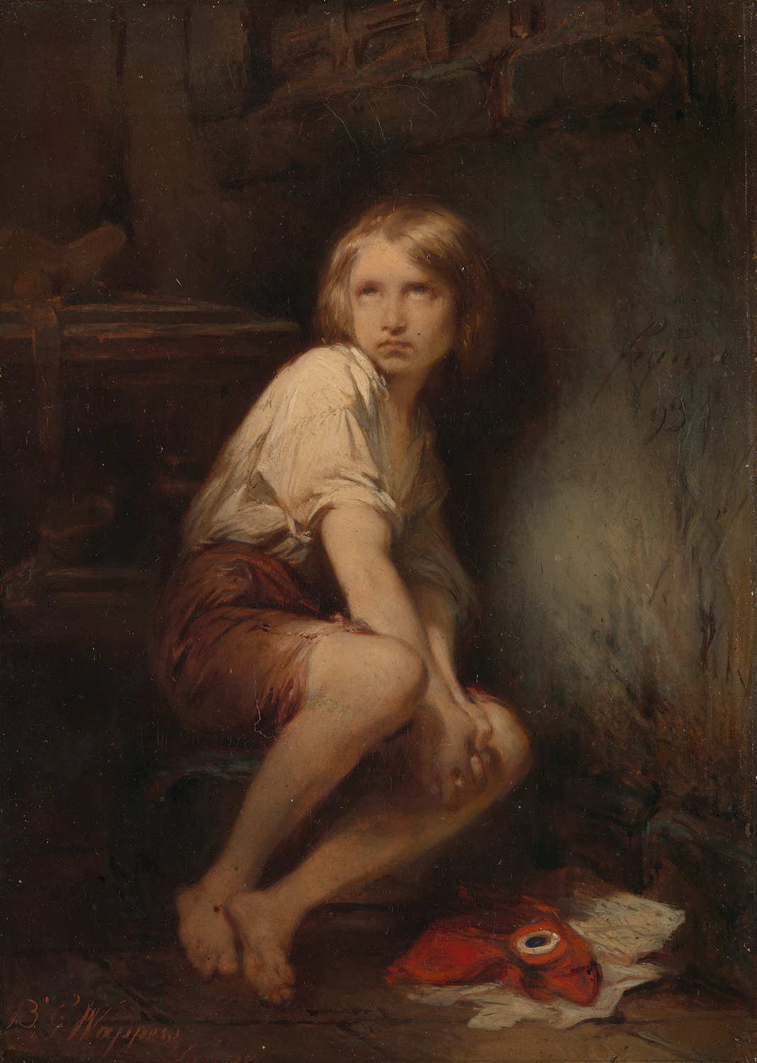 Lodewijk XVII (1785-1795) was de zoon van Lodewijk XVI. Met zijn familie werd hij opgesloten in de Temple in Parijs waar hij overleed. De uit België afkomstige Wappers kon zich rekenen tot de stroming van de Belgische romantiek. Hij kopieerde oude meesters als Rubens en Titiaan. Zijn werk werd in zowel binnen- als buitenland regelmatig onderscheiden.
