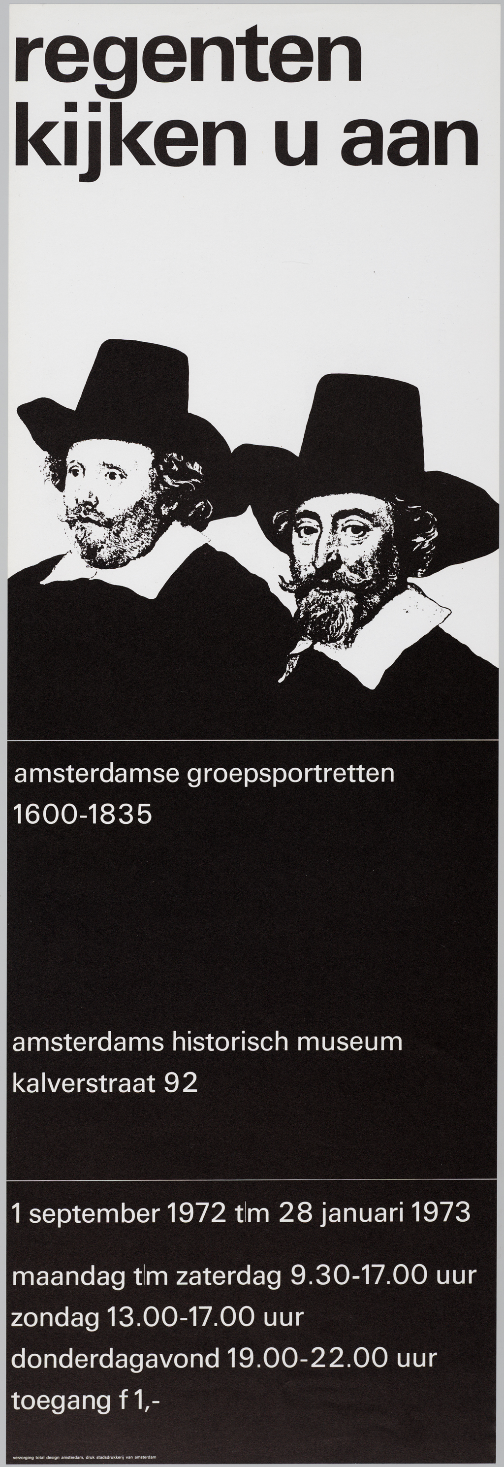 - 1972 - 1973, affiche voor tentoonstelling Regenten kijken u aan, 1972