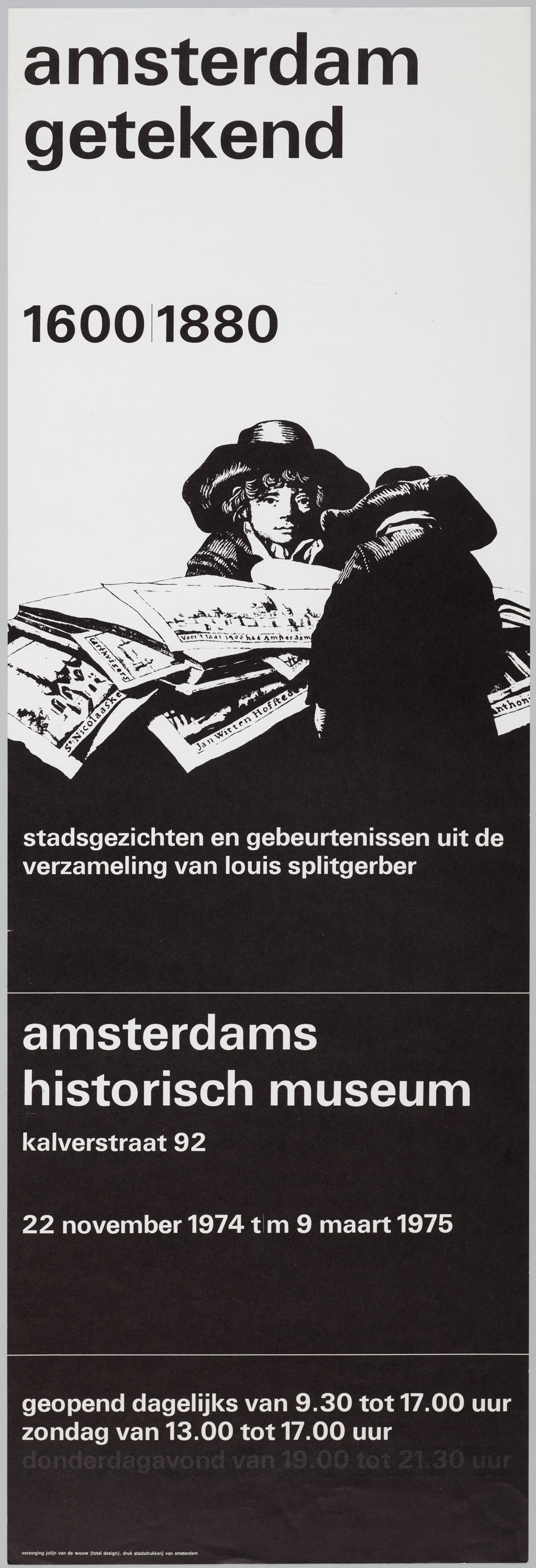- 1974 - 1975, affiche voor tentoonstelling Amsterdam getekend 1600 - 1880, 1974