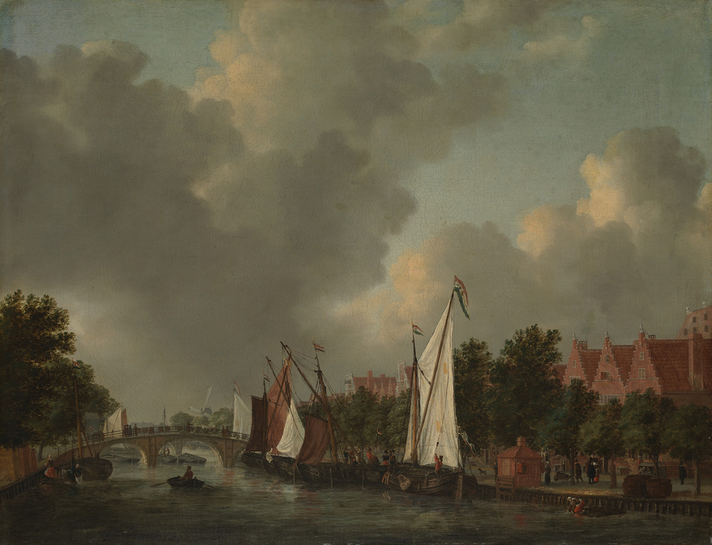 In een van zijn zeldzame stadsgezichten toont Reinier Nooms ons de Prinsengracht naar het zuiden, gezien vanaf de brug tussen de Westermarkt en de Rozengracht. De schilder, vooral bekend om zijn maritieme voorstellingen, behoort evenals Jan Beerstraten, tot de eersten die de grachten tot onderwerp van geschilderde stadsgezichten heeft genomen. Hij ging hierbij voort in een richting die hij in zijn prenten al eerder was ingeslagen. Nooms moet zijn geboeid door de rechte loop van de gracht, het langste stuk zonder bochten in de stad. Markante gebouwen ontbreken. De breed uitgemeten waterpartij wordt slechts hier en daar onderbroken door fraaie boogbruggen en schuiten. De gehesen zeilen zorgen voor verticale accenten en versterken het perspectief. Kleine schepen konden tot hier komen zonder dat de mast hoefde te worden gestreken, door gebruik te maken van de ooggaten in de bruggen. Overigens grepen schippers iedere mogelijkheid aan om, zoals hier weergegeven, hun zeilen te laten drogen zodra de weerssituatie dat toeliet.