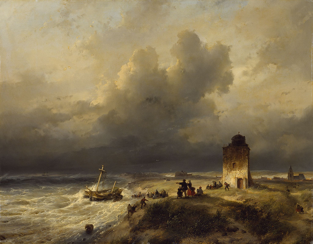 De branding, het strand en de duinen spraken tot de verbeelding van de negentiende-eeuwse romantici. Of het nu het geweld van een stormachtige branding was of de vreedzaamheid van kabbelende golven, de zee inspireerde de kunstenaars om de nietigheid van de mens ten opzichte van de natuurkracht tot uitdrukking te brengen. Andreas Schelfhout behoorde tot degenen die het van oorsprong zeventiende-eeuwse genre van het strand- en zeegezicht in Nederland deed herleven.