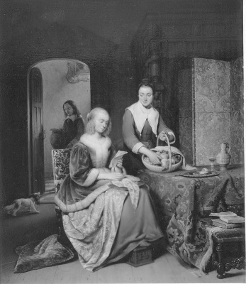 - Een dame ontvangt een geschenk van vruchten, 1823 - 1860