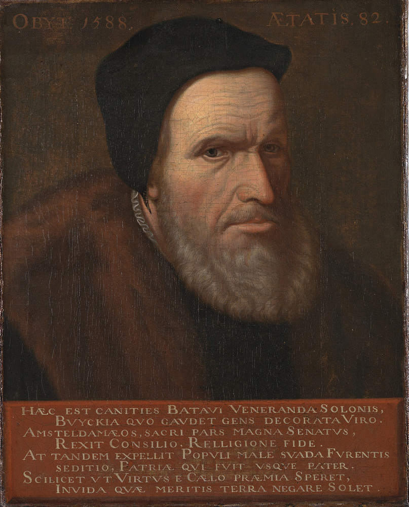 Vermoedelijk een 17de eeuwse kopie naar een 16de eeuws origineel. Op het schilderij opschriften, l.b.: "OBYT 1588", r.b.: "AETATIS.82". Onderaan: "HAEC EST CANITIES BATAVI VENERANDA SOLONIS,/ BVYCKIA QVO GAVDET GENS DECORATA VIRO./ AMSTELDAMAEOS, SACRI PARS MAGNA SENATVS,/ REXIT CONSILIO. RELLIGIONE FIDE./ AT TANDEM EXPELLIT POPVLI MALE SVADA FURENTIS / SEDITIO, PATRIAE QVI FVIT VSQUE PATER./ SCILICET VT VIRTVS E CAELO PRAEMIA SPERET,/ INVIDA QVAE MERITIS TERRA NEGARE SOLET". Vondel vertaalde deze regels als volgt uit het Latijn: