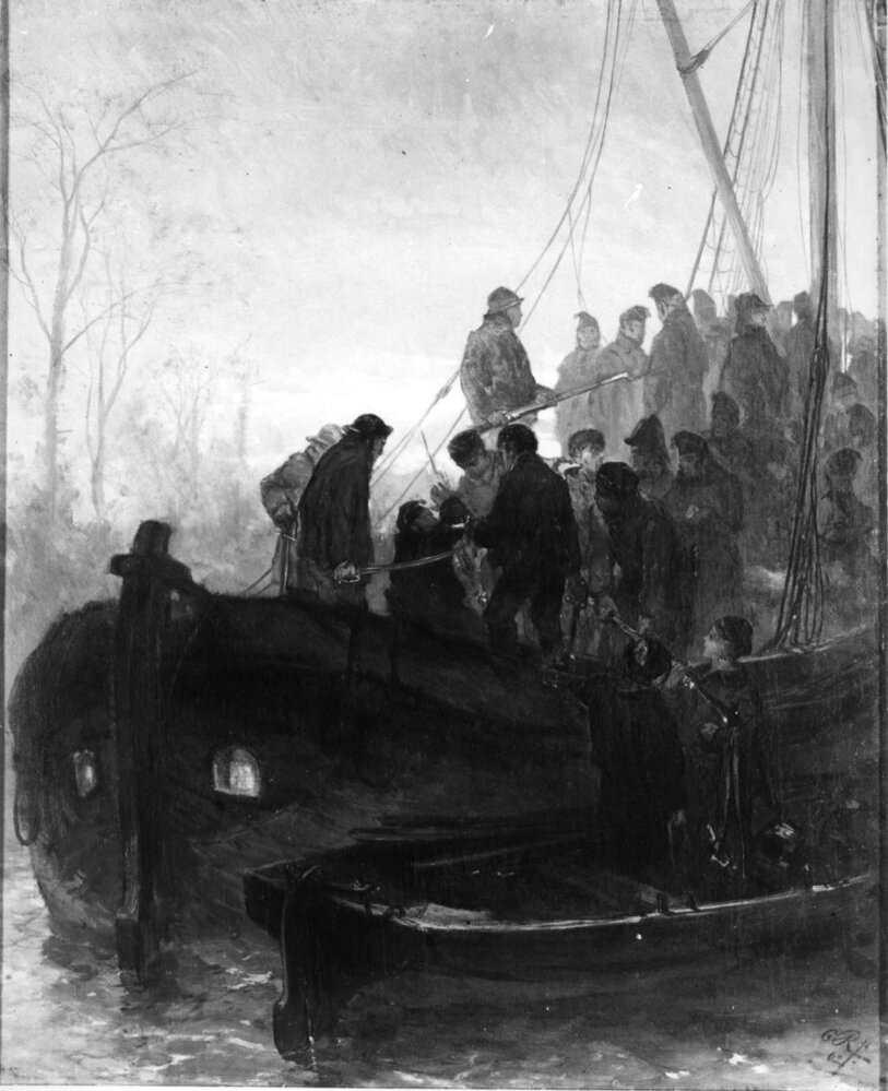 Op het gerucht der nadering van de kozakken ontruimden de Franse ambtenaren en douaniers overhaast Groningen en Friesland. Zij namen zoveel mogelijk voorwerpen van waarde en kasgeld mee. Zo voerde een schip met 32 douaniers een som van tachtigduizend gulden uit de stad Groningen weg. Schipper Roelof Schenkel belette dit. Hij ging met acht rappe gezellen in een sloep achter het schip aan tot Zoutkamp, waar zij hulp en kozakken hoopten aan te treffen. Daarin teleurgesteld, waagden de stoute schippersgasten toch de aanval op de gewapende overmacht. Op een ogenblik dat de Fransen zich in het scheepsruim bevinden, springt Schenkel met een pistool in de ene en een sabel in de andere hand, door zijn makkers gevolgd aan boord. Hij stelt zich bij het scheepsluik op en eist de wapens en het geld op. De verschrikte bemanning die niet bekend is met het kleine aantal enteraars, reikt geweren, sabels en geldzakken door het luik aan en laten zich gedwee naar Groningen terugvoeren. Schenkel en zijn mannen waren even eerlijk als dapper. Zij leverden de gevangenen en de buit aan het voorlopig bestuur uit en wilden niets voor zichzelf behouden. ( Dedalo G. Carasso)
