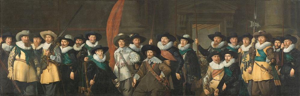 Op dit schilderij zijn de schutters van wijk XVIII afgebeeld, de wijk tussen het Rokin en de Nieuwezijds Achterburgwal (tegenwoordig Spuistraat). Zij