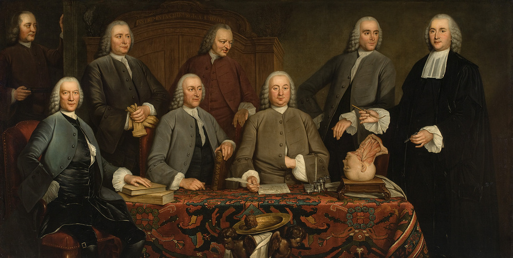 opschrift links achter, tegen de muur, op een kast: INSTRUMENTA CHIRURGICA. Ao MDCCLVII