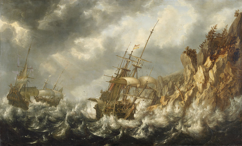 Deze spectaculaire Schipbreuk behoorde tot de inventaris van het Oudezijds Huiszittenhuis. De instelling verschafte voedsel en brandstof aan behoeftige stadsbewoners. In een inventaris van de bezittingen van het huis uit 1787 wordt het schilderij beschreven als ‘verbeeldende een Schipbreuk en de dus als de oorsprong der armoede die in desen huyse wordt te gemoet gekoomen’. De dramatische voorstelling, die het moment juist vóór de schipbreuk uitbeeldt, zou daarom evenzeer ‘Allegorie op de oorsprong van de armoede’ kunnen worden genoemd. De uit Rotterdam afkomstige schilder Simon de Vlieger woonde sinds 1638 in Amsterdam, vanaf 1649 in Weesp. Hij geldt als een van de belangrijkste schilders van zee- en kustgezichten. Zijn bekendste leerling was Willem van de Velde de Jonge.