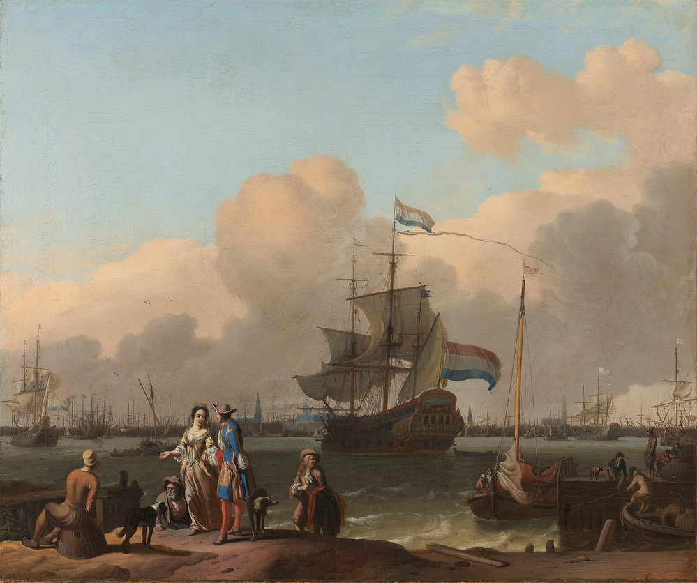 Twee jaar na Schotels 'Willemssluis' kocht Adriaan van der Hoop voor 3000 gulden dit 17de-eeuwse gezicht op de haven van Amsterdam. De maker, Ludolf Bakhuizen, geldt als een van de belangrijkste schepen- en zeegezichtenschilders van zijn tijd. In zijn kasboek beschrijft Van der Hoop zijn aanwinst met gepaste trots: ‘het schip de Ploeg op den voorgrond; alsmede eenige zeer fraai en zuiver uitgevoerde beelden; waarvan het eene in de uniform van Admiraal’. Het bestaan van het schip ‘De Ploeg’ is overigens nergens gedocumenteerd. ( Norbert Middelkoop)