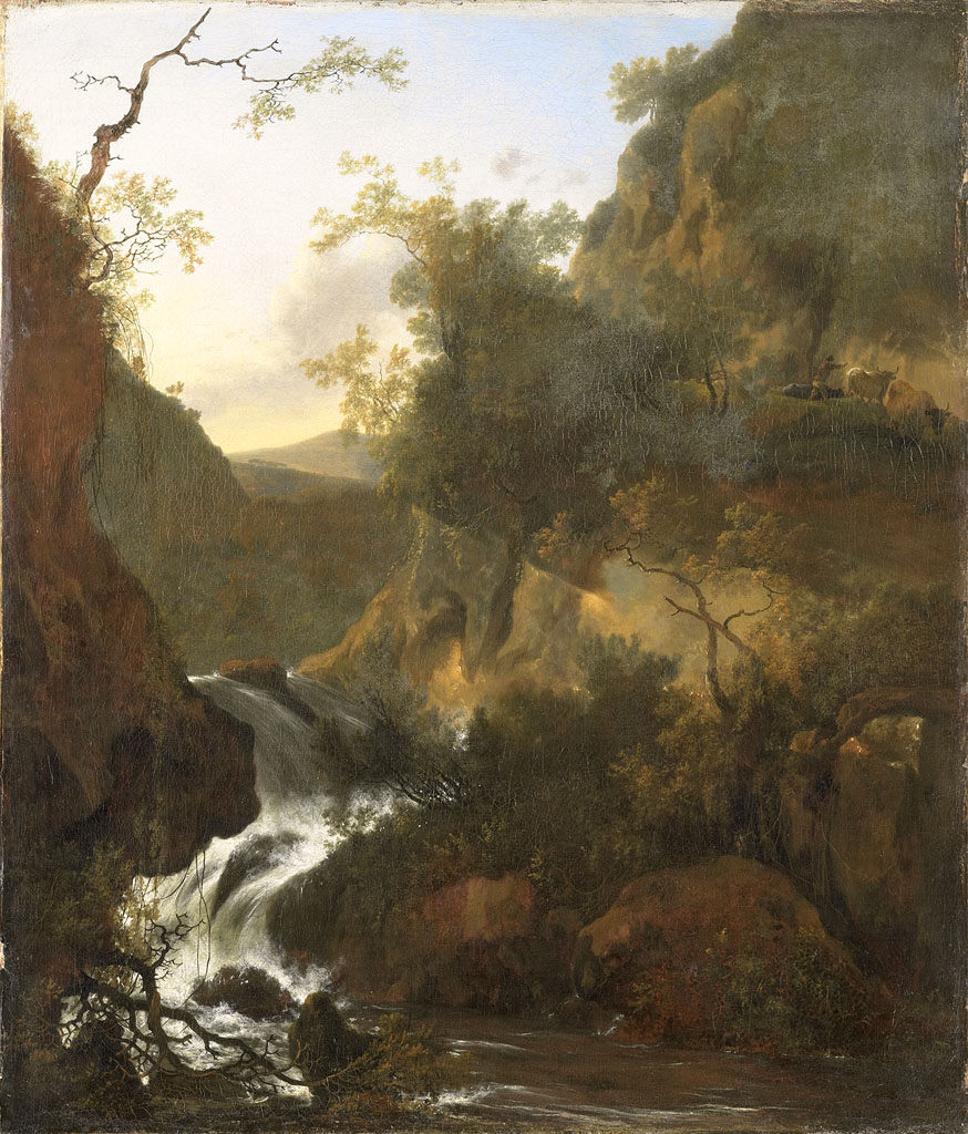 Nadat Adriaan van der Hoop deze Waterval in 1836 voor 1200 gulden had gekocht van de handelaar Albertus Brondgeest, noteerde hij in zijn kasboek: ‘Een zeer fyn bevallig landschap met een waterstroom.’ Bij zijn bezoek aan het naar Van der Hoop vernoemde museum merkte Théophile Thoré de verwantschap met het werk van Jan Both op, met daarbij een kritische noot over het teveel aan details (1860): ‘presque dans la manière de Both. De la finesse et de la lumière, mais l’exécution trop détaillée tombe dans la sécheresse.’ Ronald Gower was positiever in 1875: ‘Better, because not so green as usual.’ ( Norbert Middelkoop)