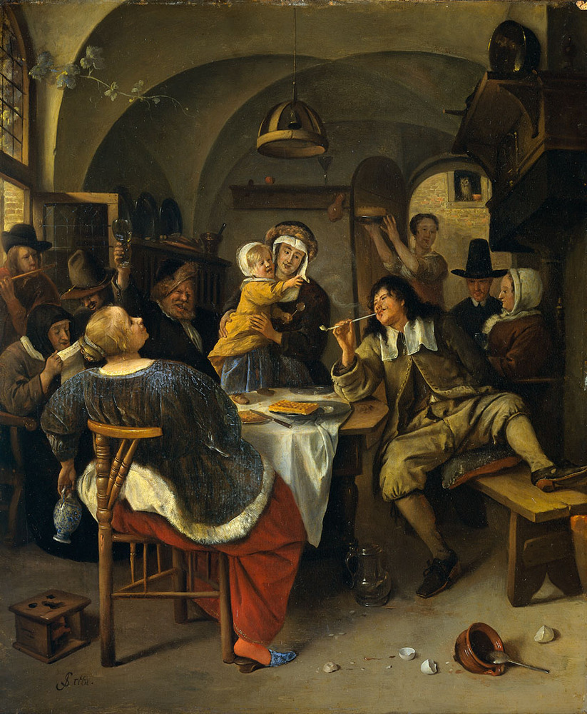 De naam van Jan Steen is tegenwoordig spreekwoordelijk verbonden met de naar hem vernoemde “huishoudens”. De schilder blonk uit in chaotisch aandoende voorstellingen van interieurs met bonte gezelschappen, veelal voorzien van een knipoog naar de toeschouwer.