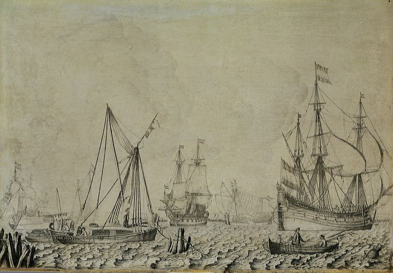 In de 17de en 18de eeuw was de Zuiderzee, tegenwoordig het IJsselmeer, een zeer druk bevaren binnenzee. Vanuit Amsterdam voeren de grote koopvaarders via de Zuiderzee naar Texel om van daaruit naar een verre bestemming te koersen. Op dit schilderij staat een gewapende koopvaarder centraal, rechts daarvan is een beurtschip afgebeeld. ( Norbert Middelkoop)