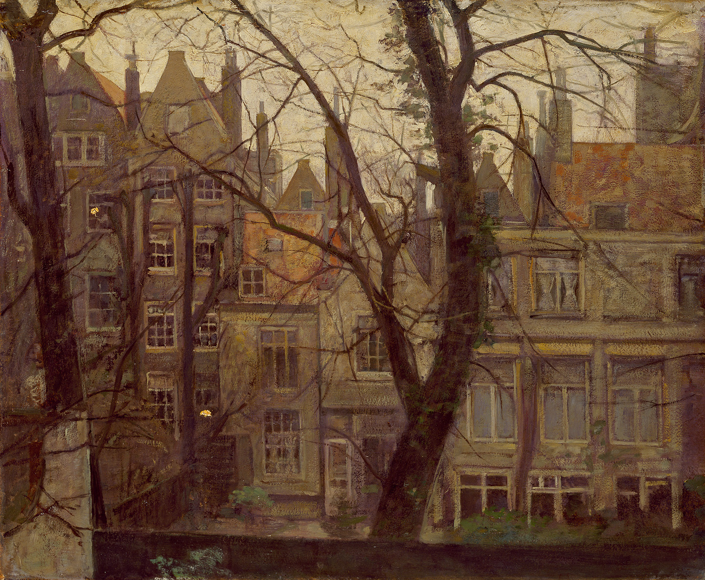 Jan Veth, schilder, graficus, schrijver en dichter, is vooral bekend geworden om zijn geschilderde en gelithografeerde portretten van bekende Nederlanders en kunstenaars. In 1924 verhuisde Veth naar de Keizersgracht 327. Vanuit zijn atelier schilderde hij dit ingetogen 'portret' van de achtergevels van de huizen aan de Herengracht.