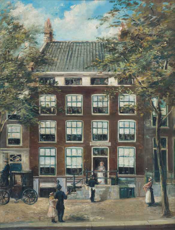 Dit is een schilderij van het kinderziekenhuis in Amsterdam uit de prilste begintijd. In 1865 ging het open aan de Oudezijds Achterburgwal in het gebouw van het voormalige Engelse Weeshuis. ( Frans Oehlen)