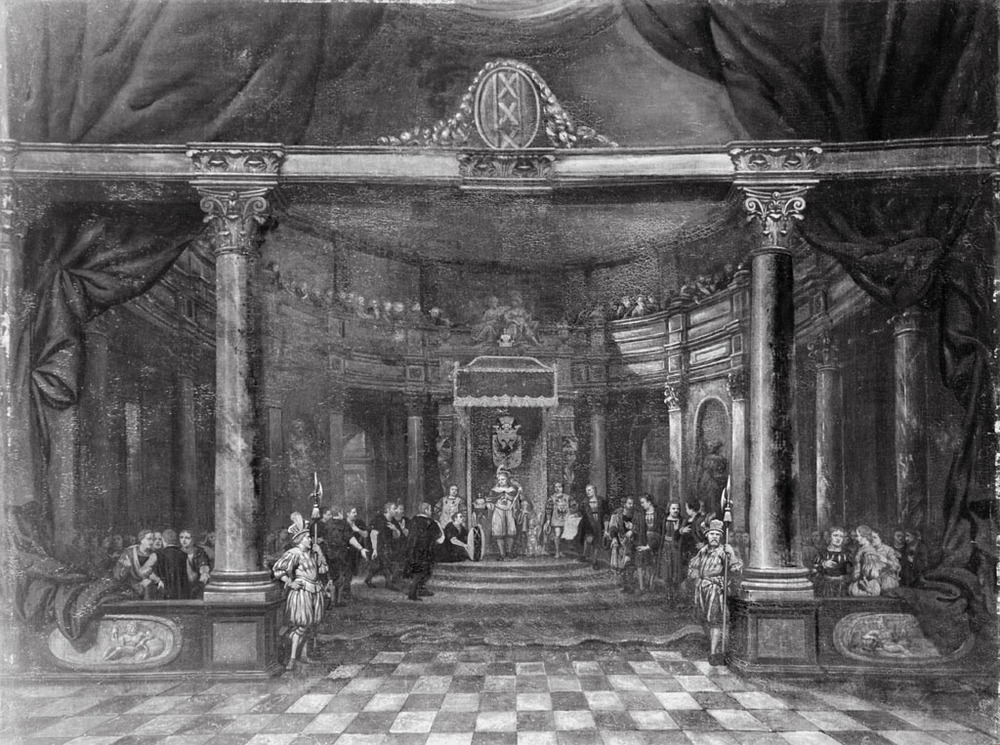 Hunningher schreef over een herhaling van de opvoering van het "tableau vivant" in de Amsterdamse schouwburg voor de heren der Admiraliteit. Ons schilderij ziet hij als "mogelijk een herinnering aan deze voorstelling", maar zeker geen precieze weergave van deze gebeurtenis. ( Albert Blankert)