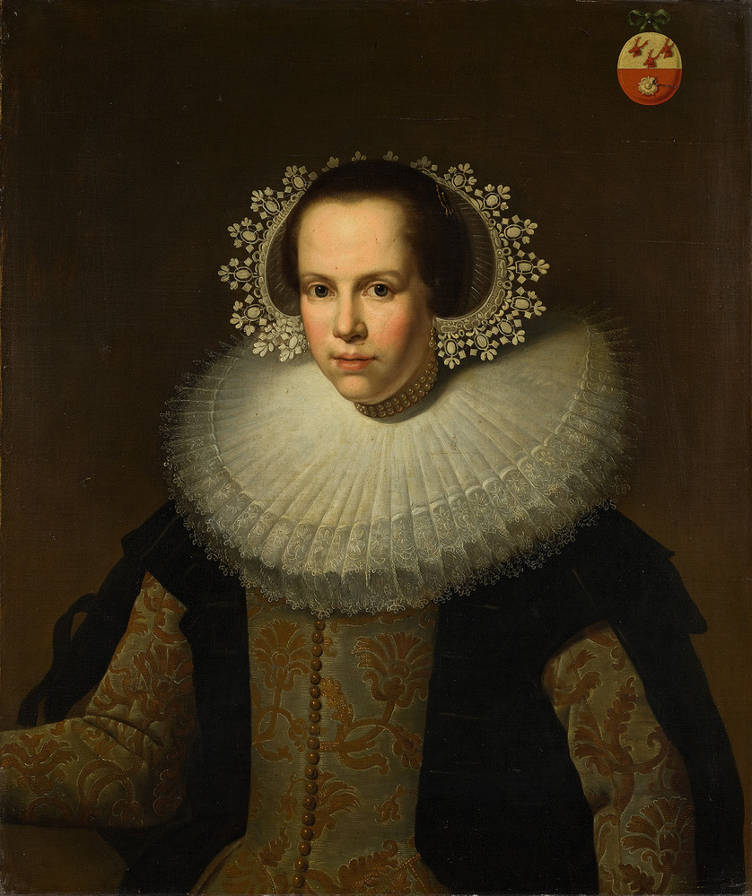 Tegenhanger van het voorgaande nr. Rechts boven een wapen. Brigitta Spiegel (1606 1668) huwde in 1627 met Willem Backer. Zij was een dochter van Laurens Jansz. en Neeltgen Isaacsdr. Ouderogh (ELIAS I, blz. 364). ( Albert Blankert)
