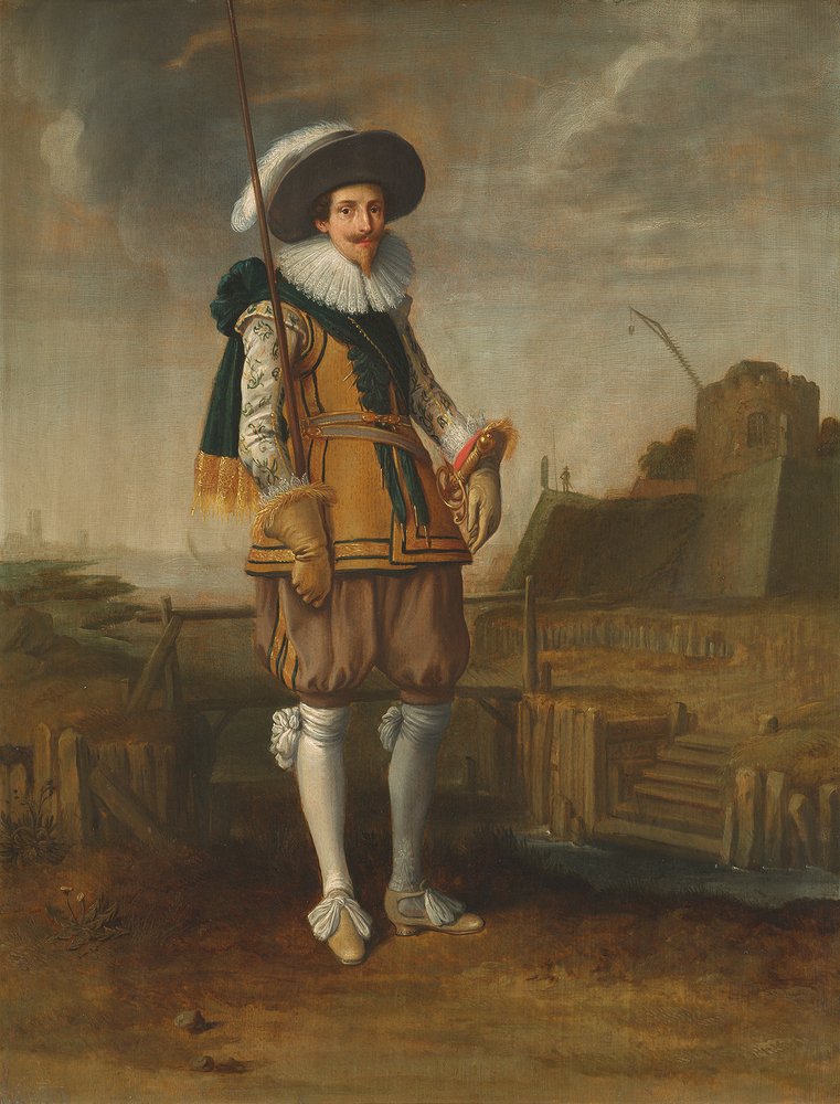 In het najaar van 1622 werd een groep Amsterdamse schutters naar Zwolle uitgezonden om de stad tegen een mogelijke aanval te verdedigen, aangezien de in Zwolle gelegerde soldaten waren ingezet tegen de Spaanse troepen in Overijssel en Friesland. Trots op hun bijdrage aan deze tocht lieten negen van hen zich op dit groepsportret in de open lucht vereeuwigen. Uitzonderlijk is dat de betreffende compagnie is samengesteld uit verschillende burgervendels van de Amsterdamse schutterij.