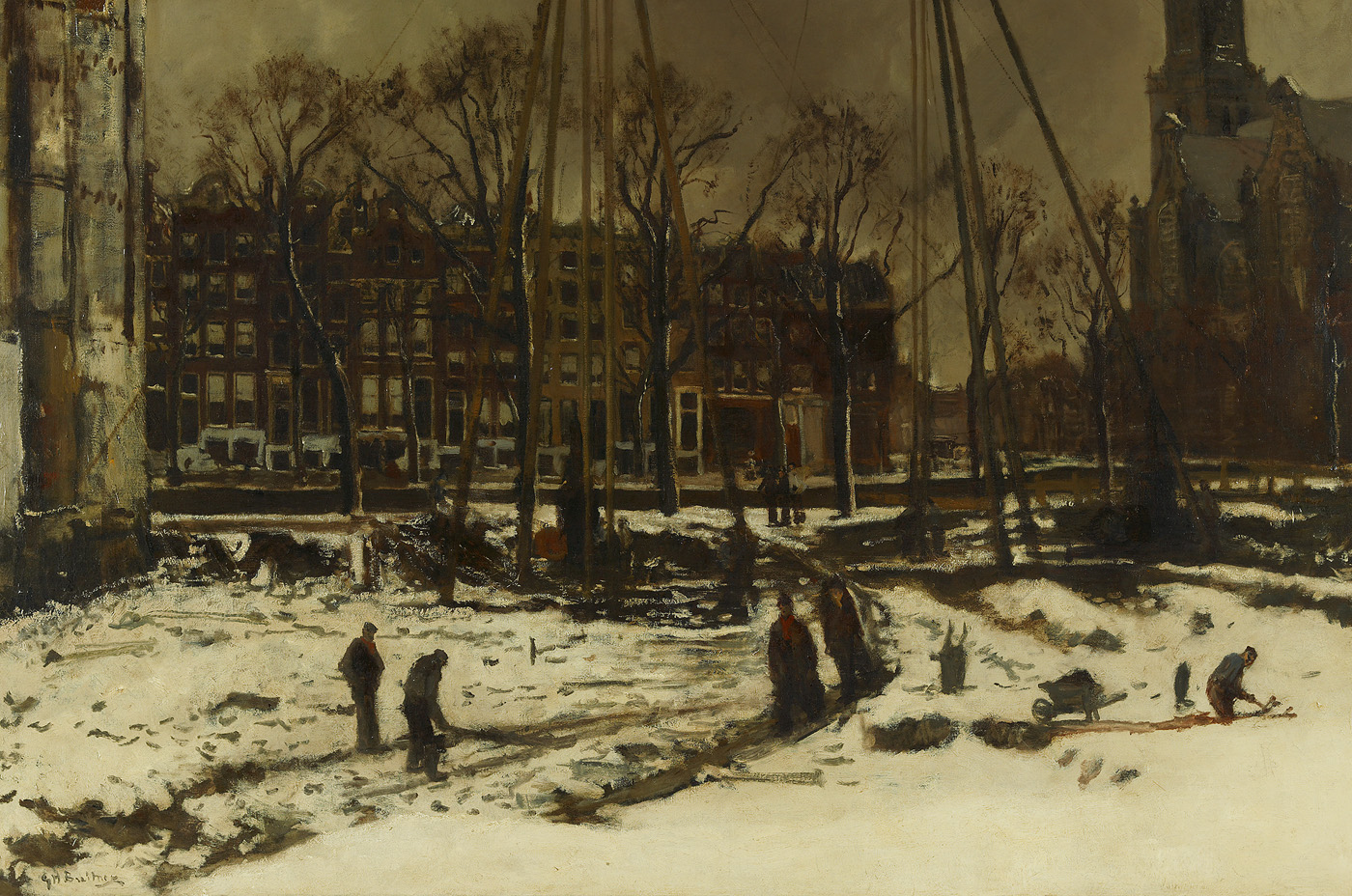 De weergave van de bouwactiviteiten door Breitner markeert een omslag in de kijk op de stad. De bouwput, de amper herkenbare omgeving en de mensen zijn door hem samengebracht in impressionistische toetsen en lichtval. Breitner heeft de doorbraak bij de Raadhuisstraat verschillende malen weergegeven. Daarbij werkte hij naar door hemzelf gemaakte foto’s. ( Jacqueline Grandjean)