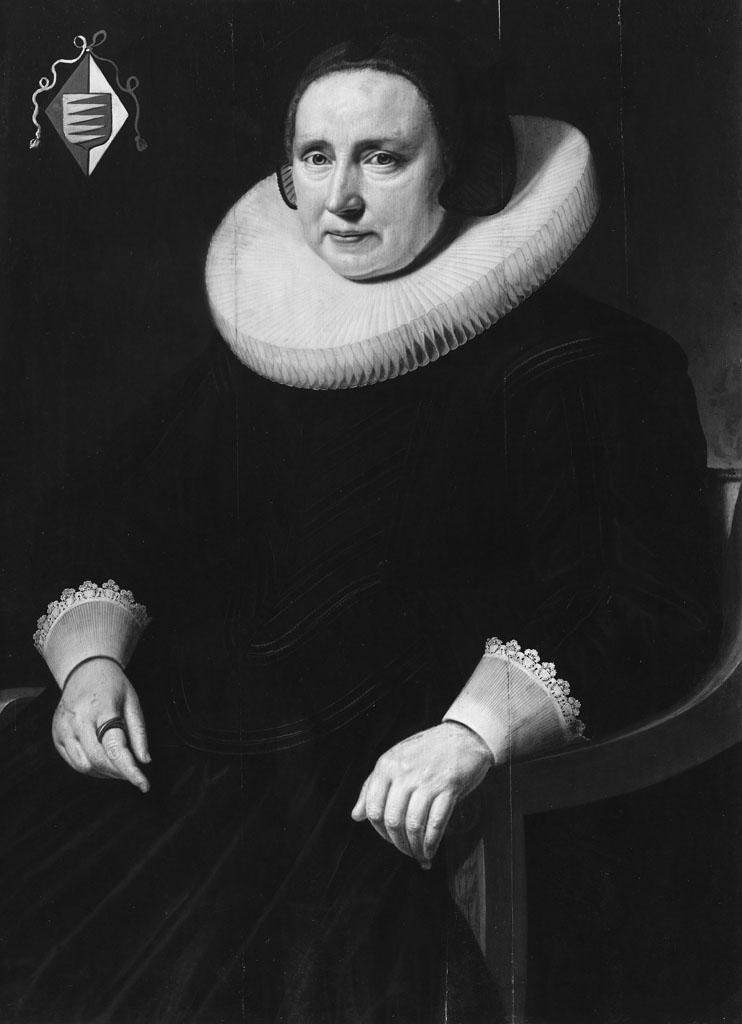 Opschrift: Aetatis 58. Tegenhanger van het voorgaande nr. Sara Sweerts (geboren 1579) was de tweede echtgenote van Antonius van der Linden. ( Albert Blankert)