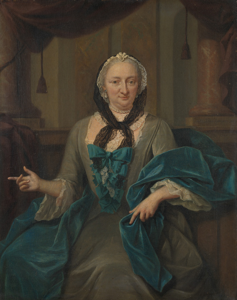 opschrift op papier op achterzijde spieraam: Margaretha Trip dogter van Jacobus Trip in zijn leven gecommitteerde Raad ter Admiraliteit van West-Friesland in 't Noorder Quartier, huysvrouw van Herman Henrick van de Poll, Burgemeester en Raad te Amsterdam, geportretteerd in 't 54ste jaar haar ouderdoms.