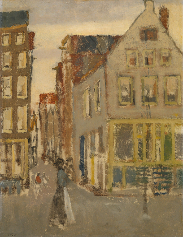 Zonder twijfel heeft Breitner dit kleine stadsgezicht ergens in Amsterdam gemaakt, schilderend en plein air. Om welke straathoek het gaat, kon nog niet worden vastgesteld.
