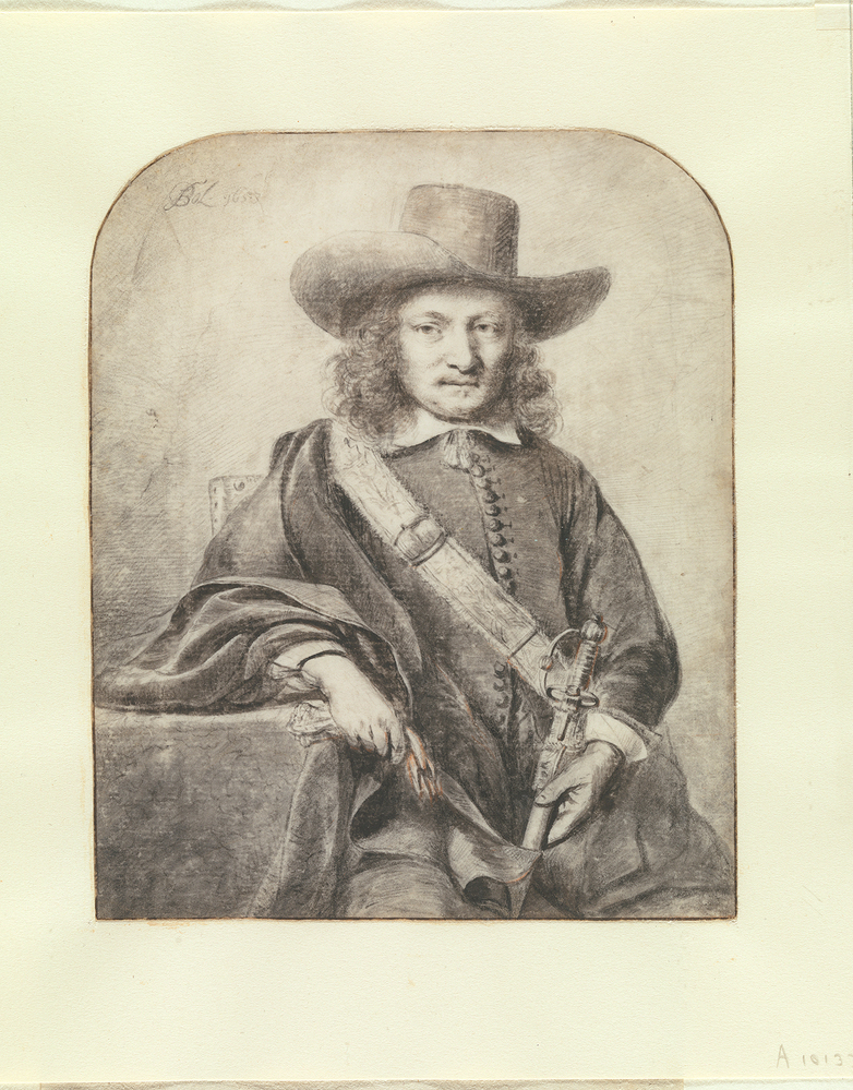Veiling van Eyl Sluyter 1814, p. 51, nr. 42: 'een zittende krijgsman, met Bandelier en Degen. Met zwart krijt en O.I. inkt, door F. Bol' (f 41,-, Cocler); Legaat C.J. Fodor 1860