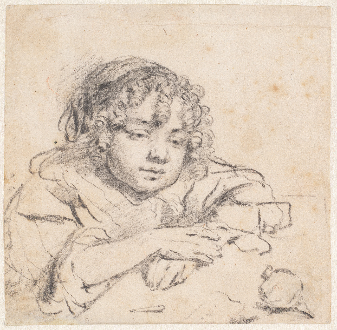 - papier, zwart krijt, krijt