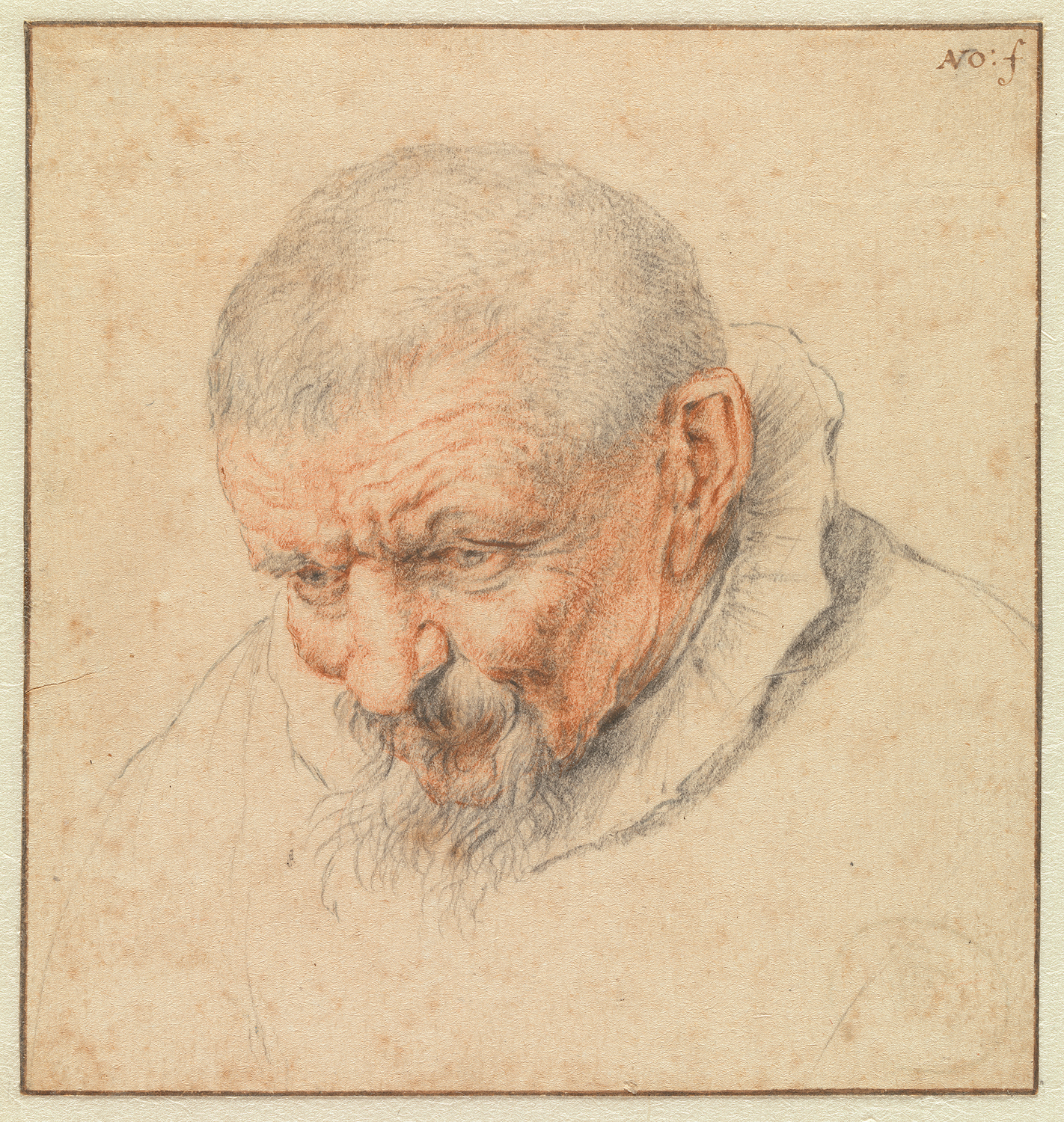 (?) Veiling Van Cranenburgh 1858, p. 26, portefeuille K, nr. 260: 'A. van Ostade. Tête d'homme; à la sanguine' (f 66,- , aan Lamme); Collectie C.J. Fodor, legaat 1860